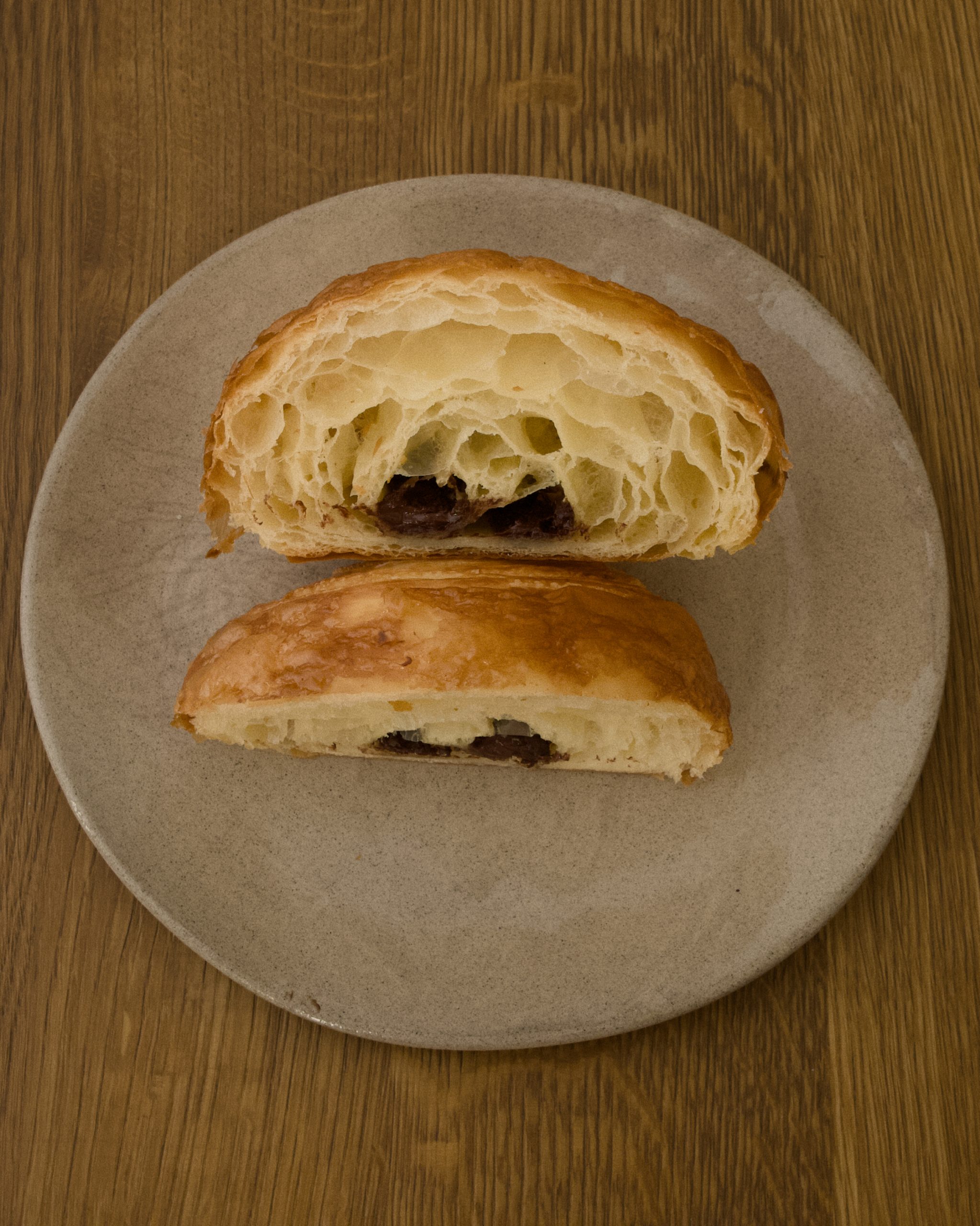 A tradicionális francia péksütemény modern, prémium értelmezése. Vajas, leveles tésztánkba kiváló minőségű Valrhona csokoládét tekerünk, amely sütés közben lágyan megolvad, és gazdag, intenzív kakaós ízt ad. A ropogós külső és a krémes belső tökéletes kontrasztot alkot.